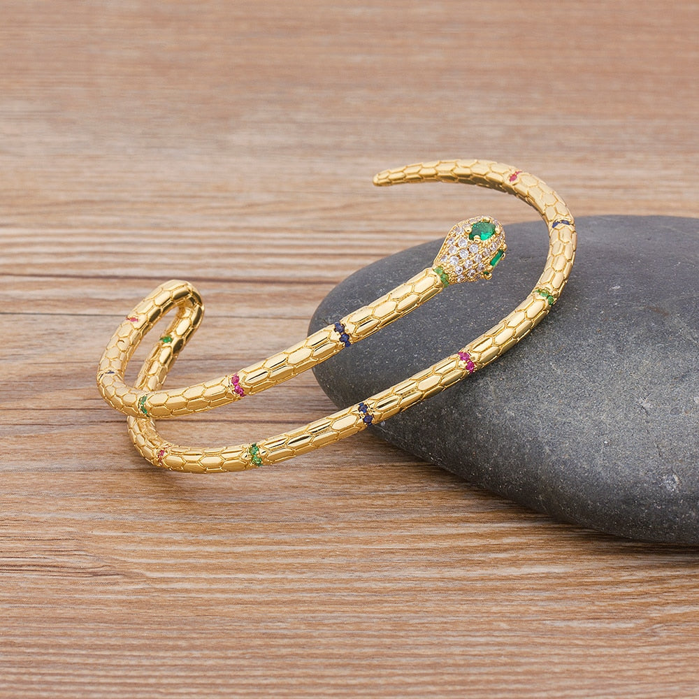 Fashion Copper Cubic Zircon Opening Cuff Adjustable Snake Bangle Jewelry